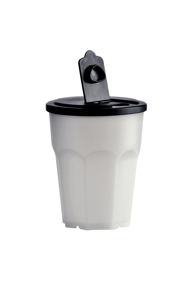Sokéves használat után ezt a poharat nem szabad a szemetesbe dobni. Ehelyett a használt anyagot ledaráljuk, és új, újrahasznosítható és környezetbarát termékek előállításához használjuk fel. Nincs hulladék.